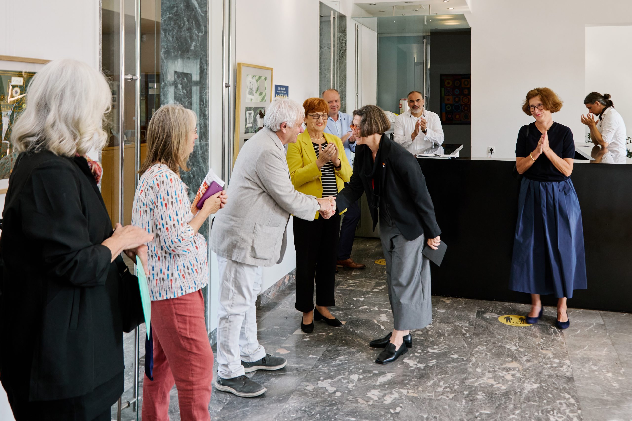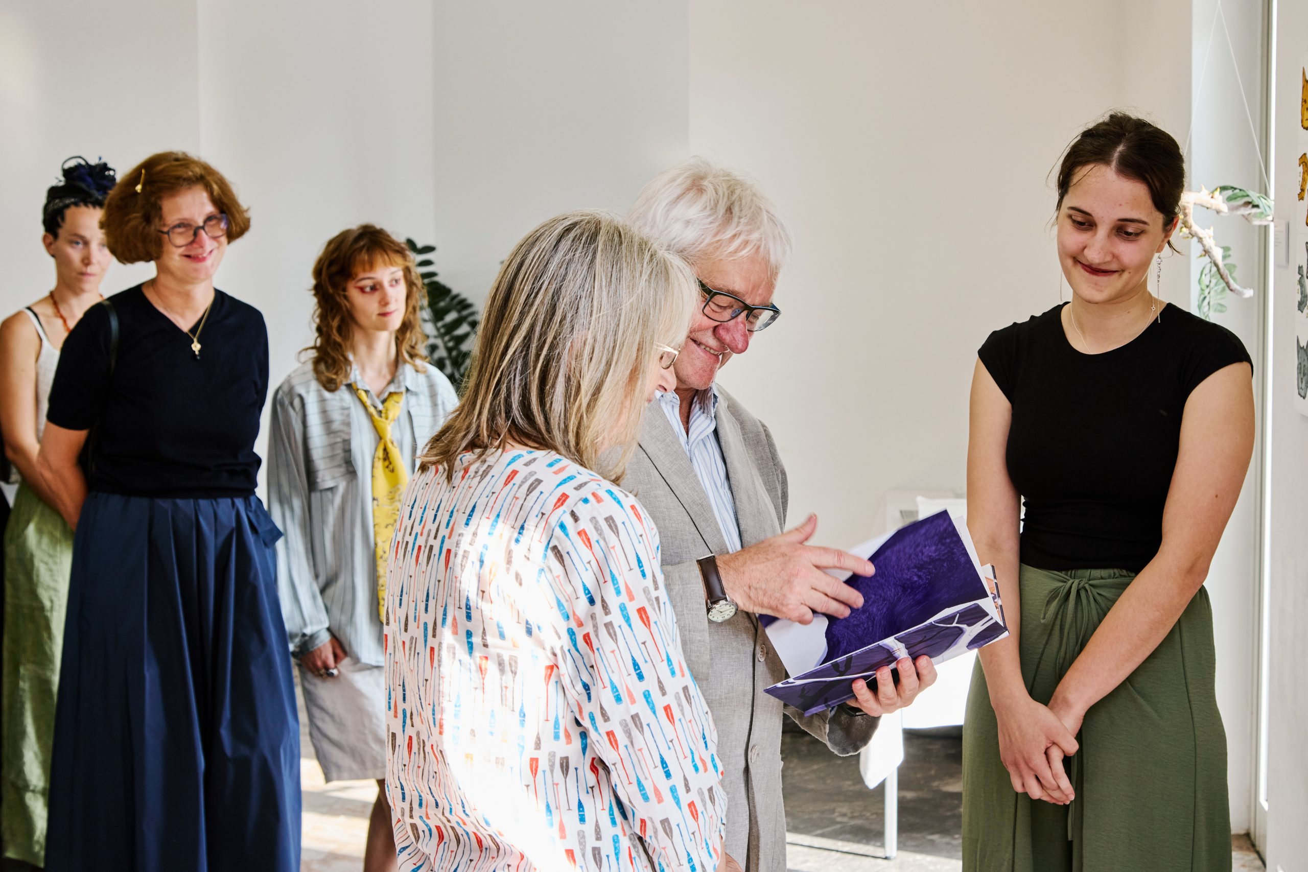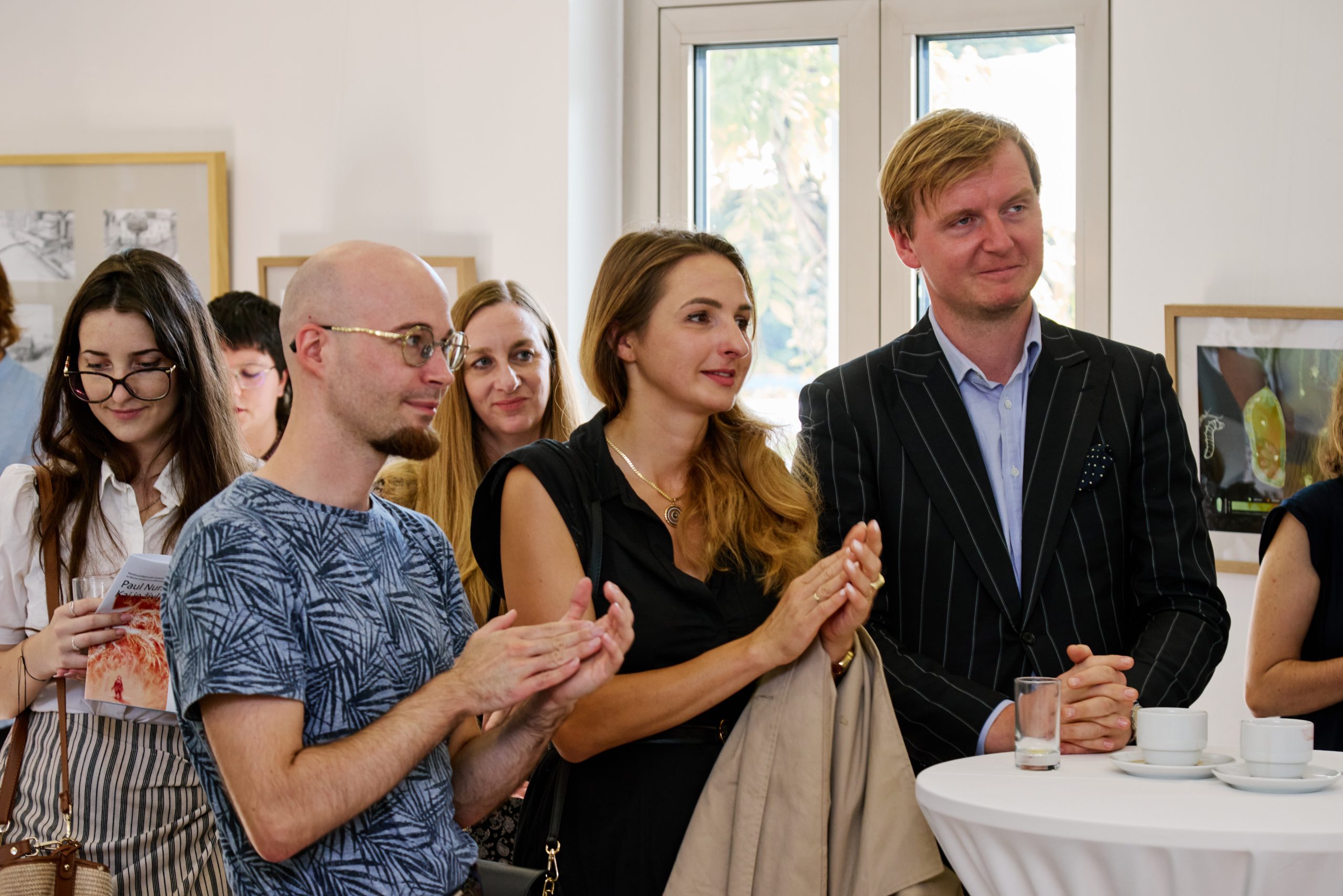 Skupaj z dr. Danico Purg, direktorico in dekanjo IEDC – Poslovne šole Bled, Gregorjem Makucem, predsednikom Sandoza Slovenija, in člani vodstvenega tima Sandoza Slovenija, sta na Bledu častnega gosta sprejeli doc. Suzi Bricelj, ena od mentoric razstave, in prof. dr. Petra Černe Oven, predstojnica Katedre za teoretske vede UL ALUO. Prva je prisotnim predstavila proces nastajanja razstavljenih del, druga pa se je v svojem govoru osredotočila na umetniško in znanstveno raziskovanje, ki ni le rdeča nit pričujoče razstave, ampak tudi nezanemarljiv vidik nadaljnjega razvoja akademske sfere, raziskovalnih institucij, industrije in družbe na splošno. Dogodka se je udeležil tudi dekan UL ALUO prof. Alen Ožbolt.