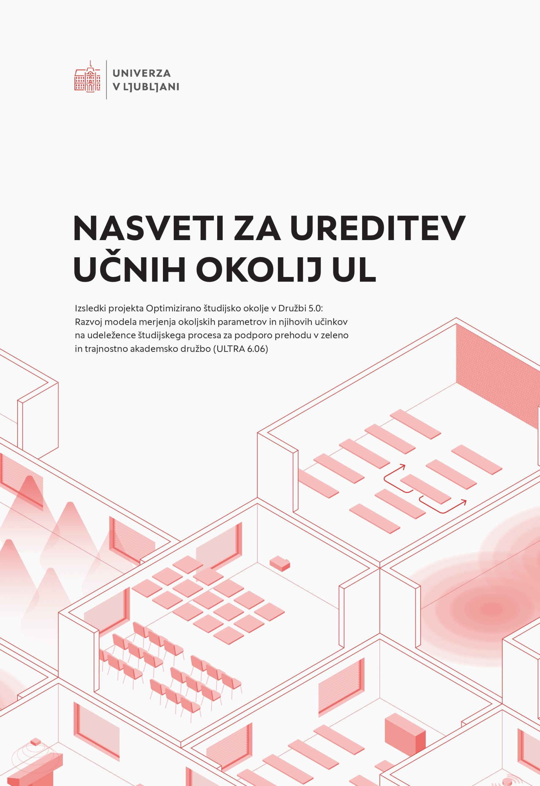 Priročnik Nasveti za ureditev učnih okolij UL je rezultat triletnega interdisciplinarnega raziskovanja članic Univerze v Ljubljani: Fakultete za elektrotehniko, Fakultete za strojništvo, Fakultete za kemijo in kemijsko tehnologijo, Biotehniške fakultete, Fakultete za pomorstvo in promet, Pedagoške fakultete, Filozofske fakultete ter Akademije za likovno umetnost in oblikovanje.